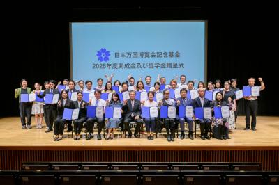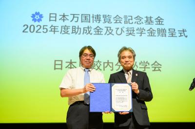 このたび、当学会は公益財団法人関西・大阪21世紀協会万博記念基金事業部様より、「ICCE19」開催に関する助成金を賜りました。 それに伴い、令和7年8月7日、大阪工業大学梅田キャンパスOIT梅田タワー3階 常翔ホールにて行われた贈呈式に出席し、助成を受けた32団体のうち、代表団体の一つとして登壇し、佐竹会長が同協会理事長・崎元利樹様より目録を拝受いたしました。ここに改めて深く御礼申し上げます。
